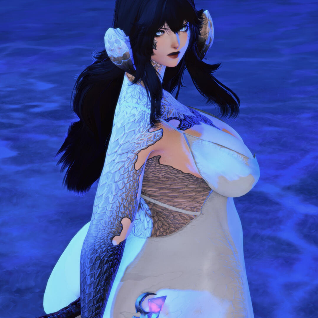 Mei is a cold, unforgiving woman - though she presents herself as finely mannered, she has little patience and less whimsy. Born in a village in the depths of the Glass Ocean, she has been trained strictly by her grandfather since a young age to fulfill many roles - healer, bringer of peace, exorcist, medium, and inevitably, a bride. Although she thrived at her training and was beloved by her people, her wedded fate was ruined when a visiting Auri woman deceived her grandfather and abandoned her at the altar.Seeking revenge for her wounded ego and ruined bridehood both, she left her village, and the sea itself, to hunt that woman. Though much of her life has been defined by violence and cruelty in the name of a higher power, she is fundamentally a tender, romantic soul, and thrives in periods where her life allows her peace and companionship. She will eagerly pick up her sword in defense of what she holds dear - but better this, than the vicious hunts she is prone to devoting endless time and energy to.